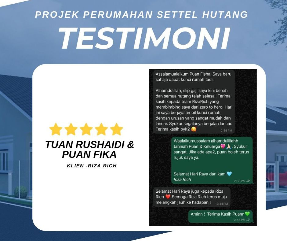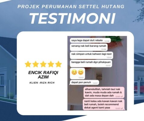 Dengan bantuan pasukan Agensi Riza Rich yang telah menguruskan lebih 1700 transaksi pembelian rumah/hartanah di seluruh Malaysia dalam tempoh 10 tahun, mempunyai networking yang luas bersama banker dan peguam hartanah, biar saya bantu uruskan pembelian rumah impian anda samada untuk diduduki sendiri atau untuk pelaburan.